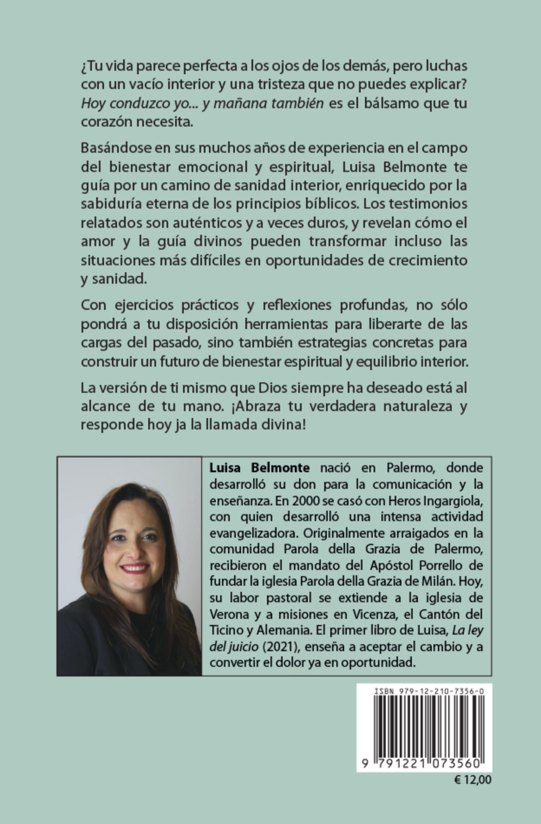¿Tu vida parece perfecta a los ojos de los demás, pero luchas con un vacío interior y una tristeza que no puedes explicar? Hoy conduzco yo... y mañana también es el bálsamo que tu corazón necesita. Basándose en sus muchos años de experiencia en el campo del bienestar emocional y espiritual, Luisa Belmonte te guía por un camino de sanidad interior, enriquecido por la sabiduría eterna de los principios bíblicos. Los testimonios relatados son auténticos y a veces duros, y revelan cómo el amor y la guía divinos pueden transformar incluso las situaciones más difíciles en oportunidades de crecimiento y sanidad. Con ejercicios prácticos y re exiones profundas, no sólo pondrá a tu disposición herramientas para liberarte de las cargas del pasado, sino también estrategias concretas para construir un futuro de bienestar espiritual y equilibrio interior. La versión de ti mismo que Dios siempre ha deseado está al alcance de tu mano ¡Abraza tu verdadera naturaleza y responde hoy ja la llamada divina!
